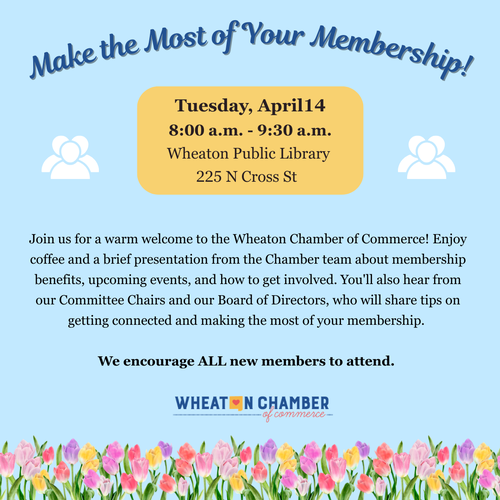 Join us for a warm welcome to the Wheaton Chamber of Commerce! Enjoy coffee and a brief presentation from the Chamber team about membership benefits, upcoming events, and how to get involved.